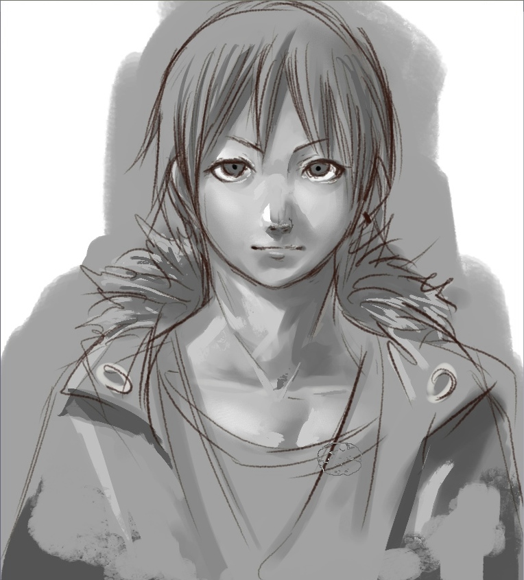 僕の使い方は、まずグレースケールでぱぱーと。(白黒は立体を最も把握しやすいため。)↓